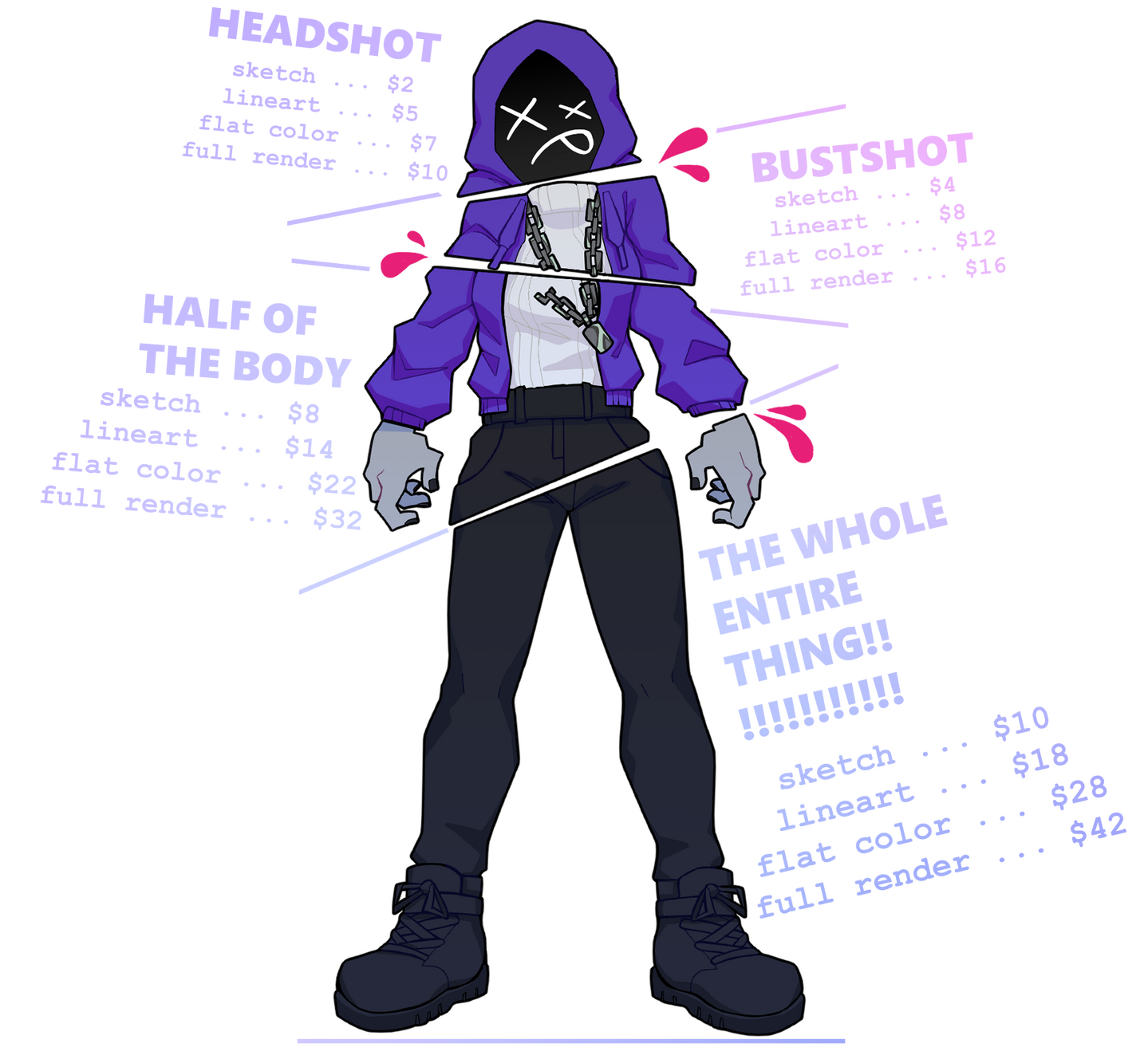 - give me any other important details. the more specific you are, the better!3. you need to pay upfront before i can start a commission.